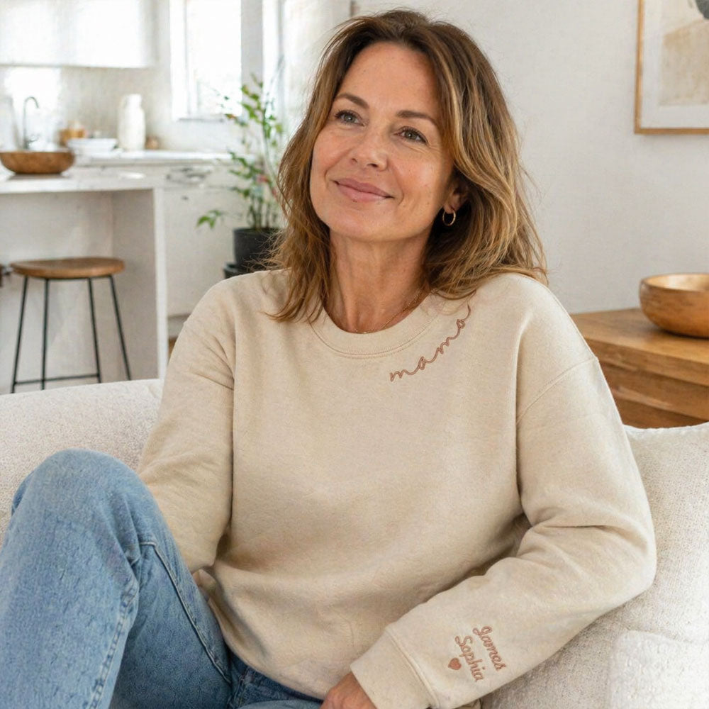 I really like the sweatshirt. I would suggest you add a font size as an option when adding names. I thought the names on the sleeve would be larger. In the description the names on the sleeve were larger than mine.