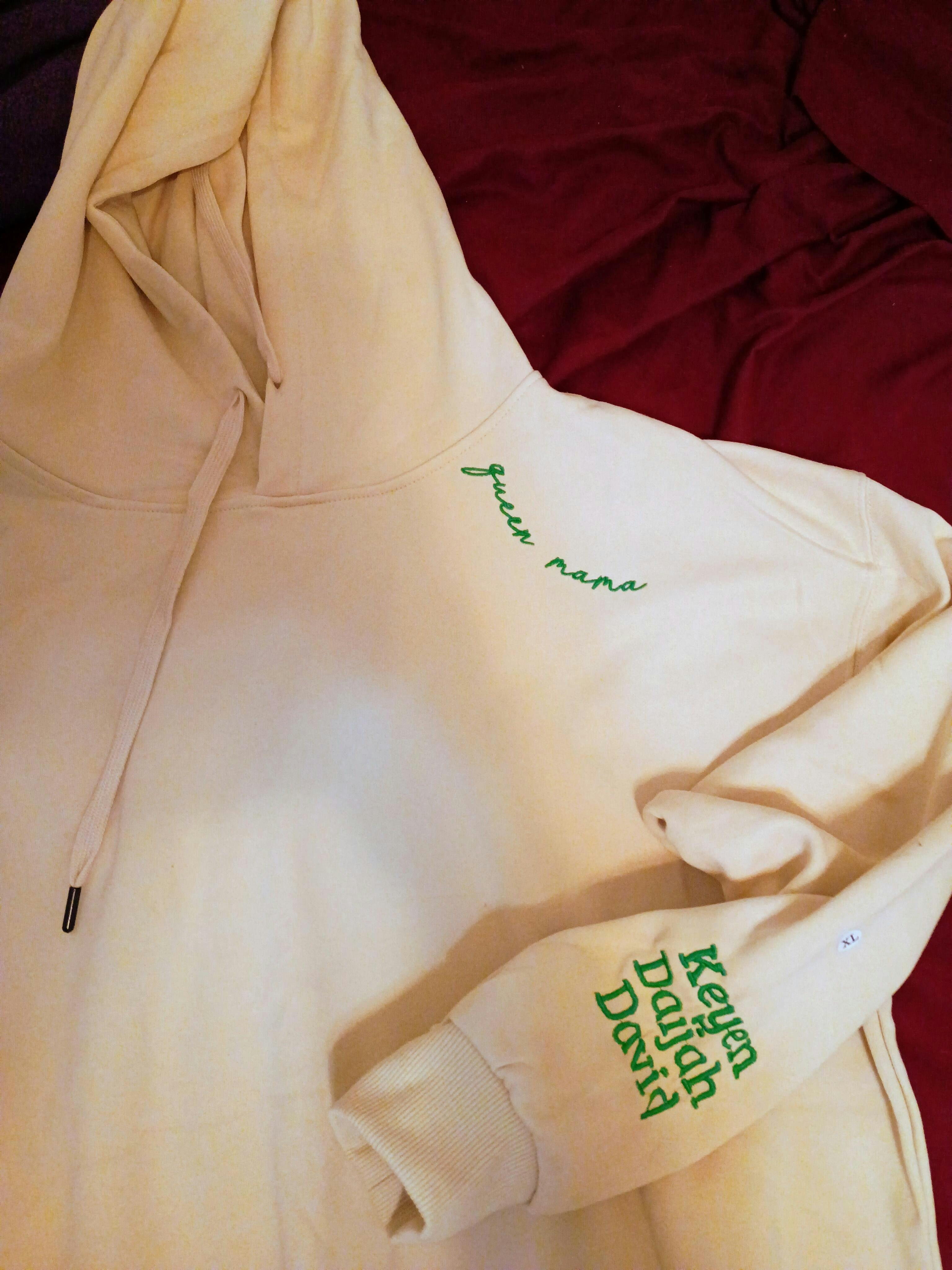 The sweatshirt quality's the best and there was burned in white circle mark near the names on the wrist.