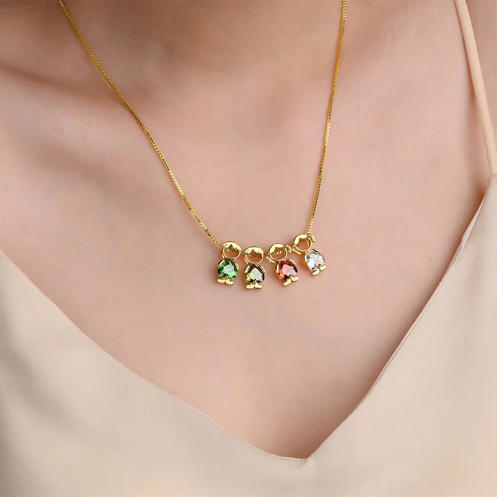 Vintage 80s Boy & Girl Charm Sterling Silver Pendant Necklace - Mother's Day Birthday Gift