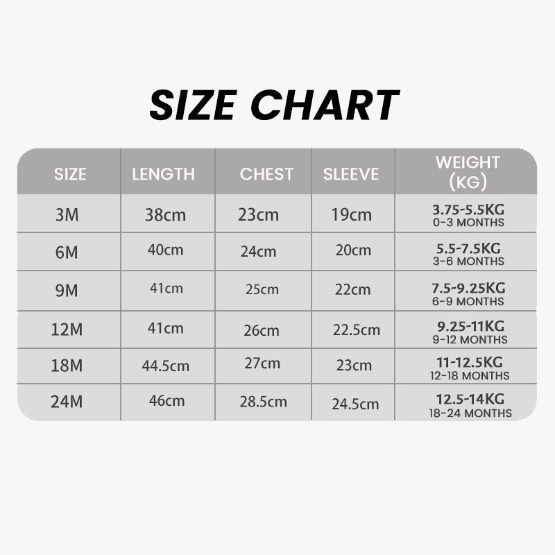 This baby onesie is made of 100% cotton, which is soft to the touch and breathable, suitable for baby's delicate skin. Fine craftsmanship ensures comfort and durability, while having good elasticity, allowing the baby to move more freely.