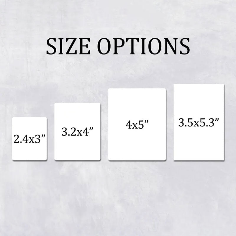 Size options: 2.4"x3", 3.2"x4", 4"x5", 3.5" x 5.3"
