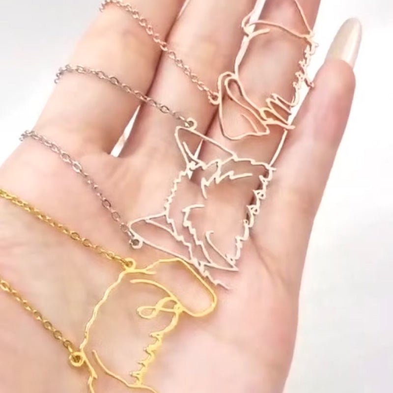 Custom Hollow Cat and Dog Ears Clavicle Necklace Pendant - Canvasgiftco